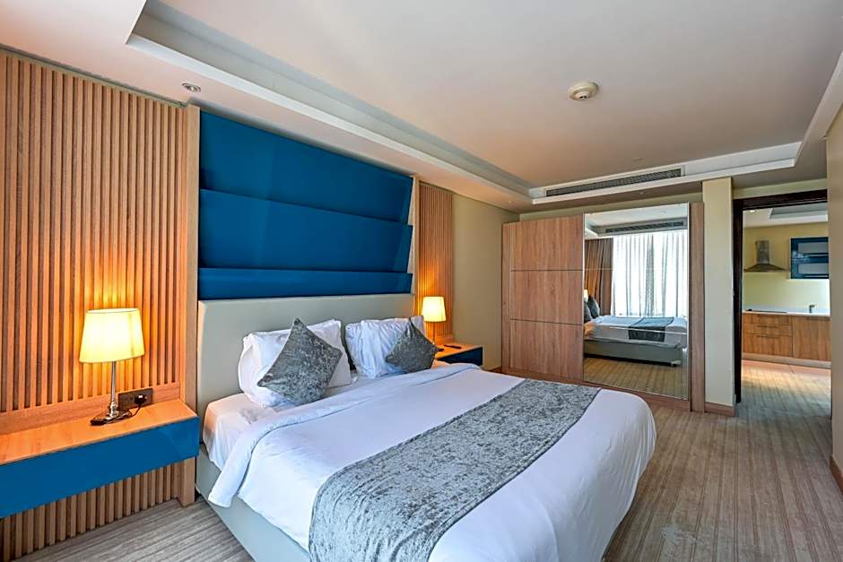 Boasting a private entrance, this air-conditioned suite includes 1 living room, 1 separate bedroom and 1 bathroom with a walk-in shower and slippers. The suite's kitchenette, which has a stovetop and a refrigerator, is available for cooking and storing food. The suite offers a flat-screen TV with cable channels, a washing machine, a tea and coffee maker, a seating area as well as city views. The unit has 1 bed.